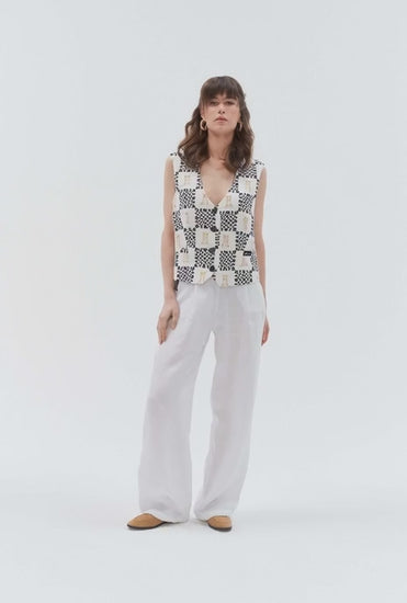 Lininė liemenė „Vesta“ skirta miesto divai, kuri pasitiki savimi besąlygiškai ir tuo įkvepia kitus.